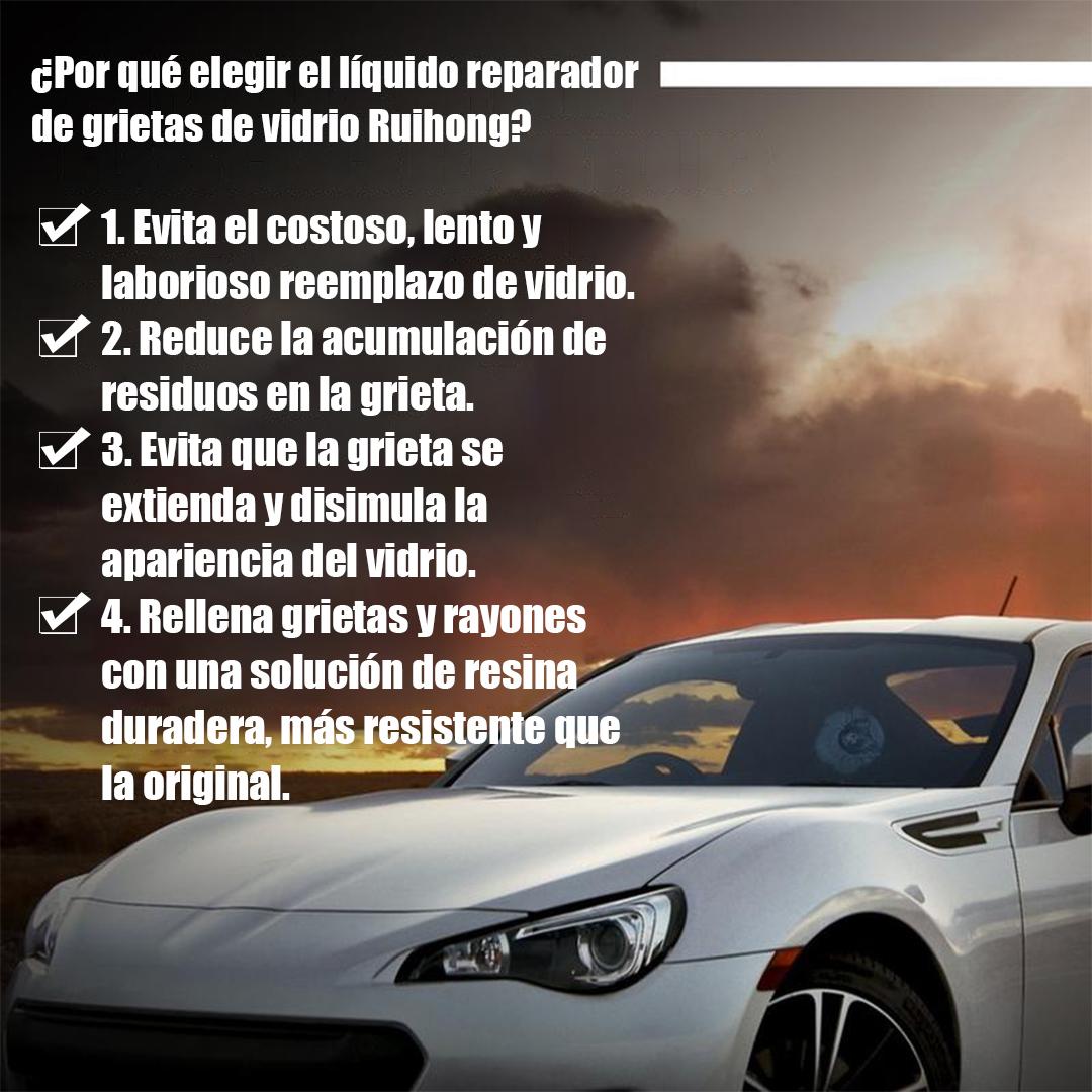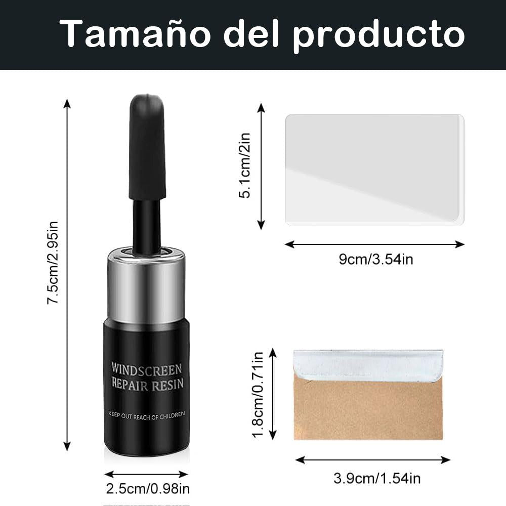 El Reparador de Vidrios para Parabrisas elimina rápida y fácilmente las grietas rellenándolas con resina de primera calidad. ¡Simplemente aplica la resina en las grietas para reparar ventanas, vidrios y espejos rotos en minutos!